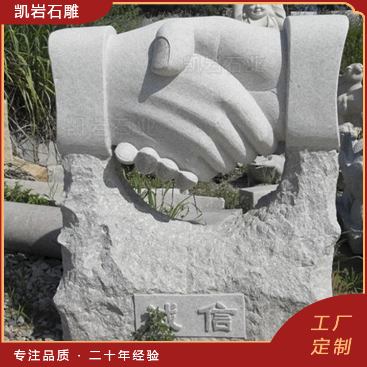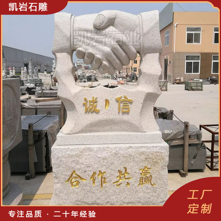 泉州凯岩石业制作的石雕诚信握手雕像,采用优质的石质精雕细琢而成,善用千年文化雕凿工艺的研究、传承、融合和发扬,使石雕作品承载艺术文化、体现更多社会价值。
