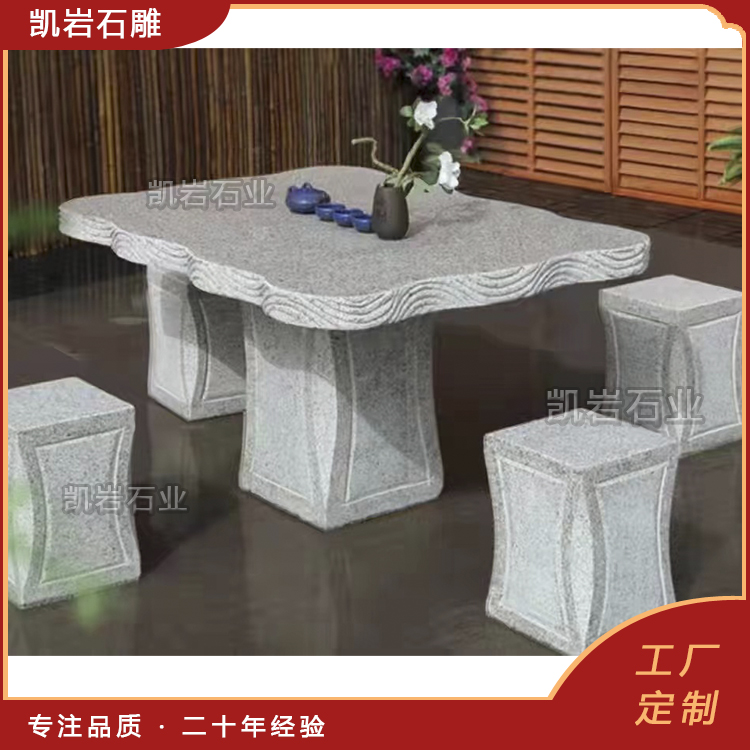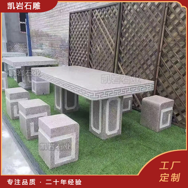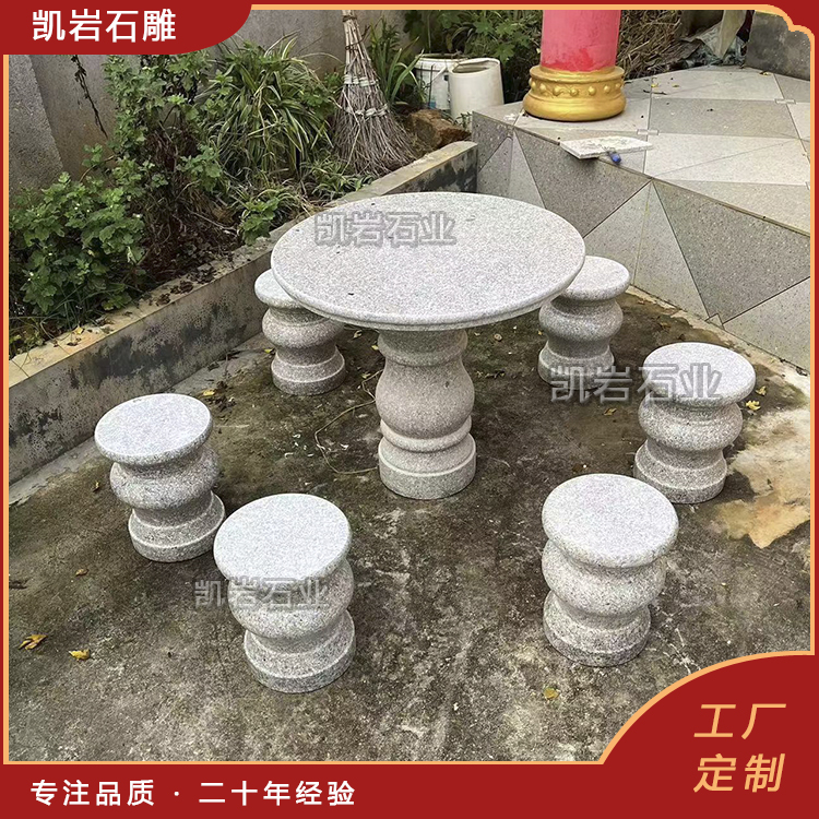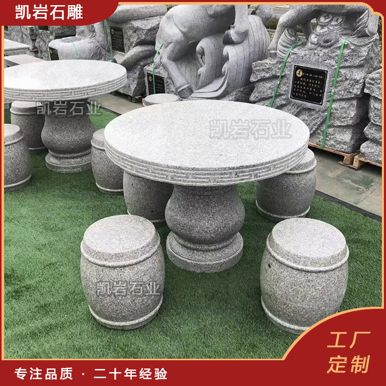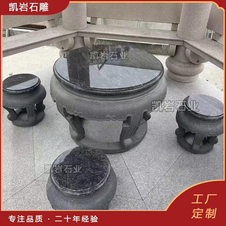 石雕桌椅,是天然石材与人工匠心的完美结合。它没有木质家具的娇贵,没有金属家具的冰冷,却有着岁月沉淀的沉稳与温润,既能承载人们休憩的惬意,也能彰显空间的格调与人文底蕴。 它作为园林景观与家居装饰中不可或缺的一部分,以其独特的艺术魅力和实用价值,深受人们的喜爱。 泉州凯岩石业制作的石雕桌椅,采用优质的石质精雕细琢而成,善用千年文化雕凿工艺的研究、传承、融合和发扬,使石雕作品承载艺术文化、体现更多社会价值。 【相关阅读】