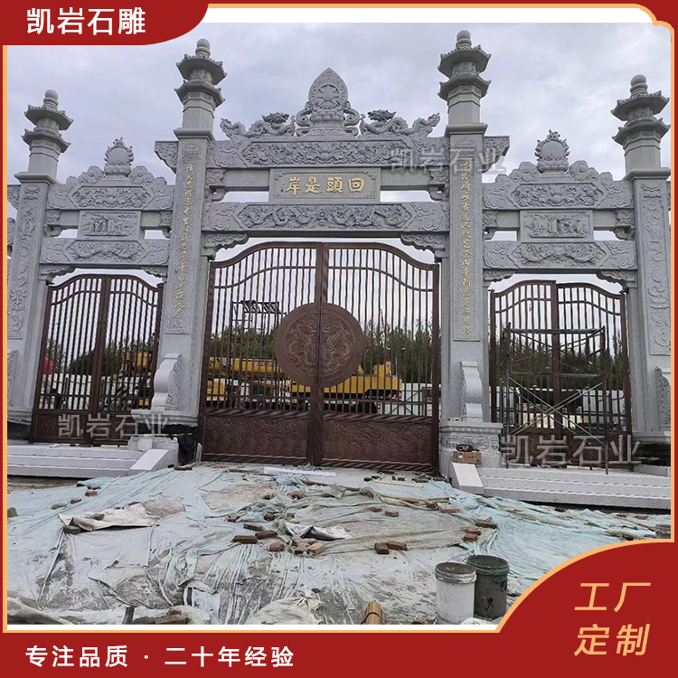 泉州凯岩石业制作的石雕山门,采用优质的石质精雕细琢而成,善用千年文化雕凿工艺的研究、传承、融合和发扬,使石雕作品承载艺术文化、体现更多社会价值。