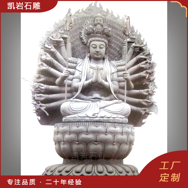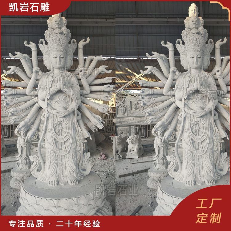 泉州凯岩石业制作的石雕千手观音,采用优质的石质精雕细琢而成,善用千年文化雕凿工艺的研究、传承、融合和发扬,使石雕作品承载艺术文化、体现更多社会价值。