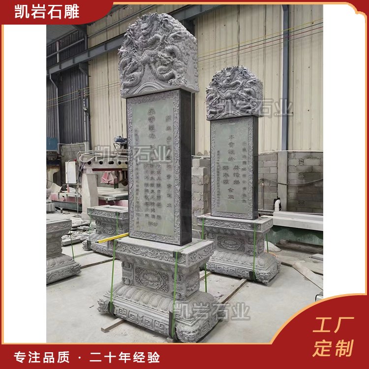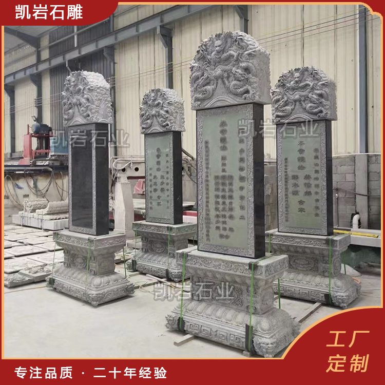 ![]() 石雕龙头碑,又称“龙首碑”,是中国传统石雕艺术中极具代表性的品类,以碑首雕刻龙头、碑身镌刻龙纹为核心特征,贯穿中国数千年的礼仪、祭祀与文化传承,既是石材与匠心的融合,更是中华龙文化的具象载体。