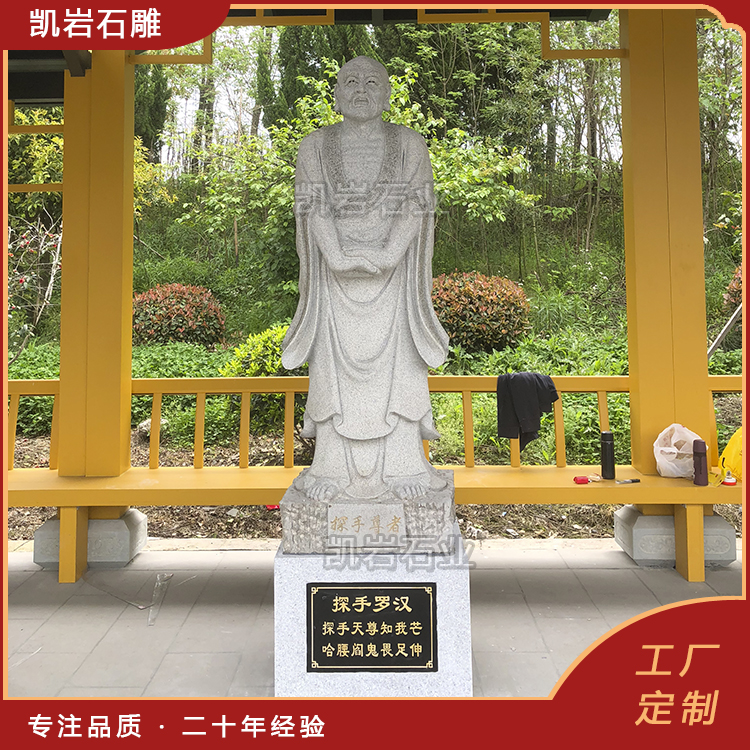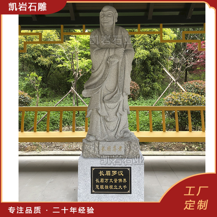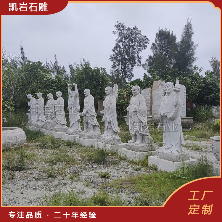 泉州凯岩石业制作的石雕十八罗汉像,采用优质的石质精雕细琢而成,善用千年文化雕凿工艺的研究、传承、融合和发扬,使石雕作品承载艺术文化、体现更多社会价值。