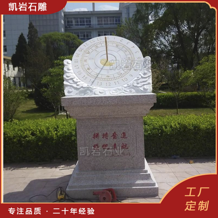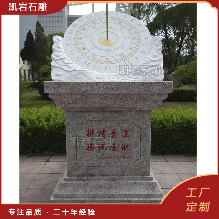 作为校园文化符号,石雕日晷广泛应用于校园、广场、公园等场所,不仅具有装饰作用,还蕴含着人文历史的深远意义。它将天文智慧、工艺之美与文化情怀融为一体,跨越千年岁月,依然能让我们感受到古人对自然的敬畏、对时光的珍视。