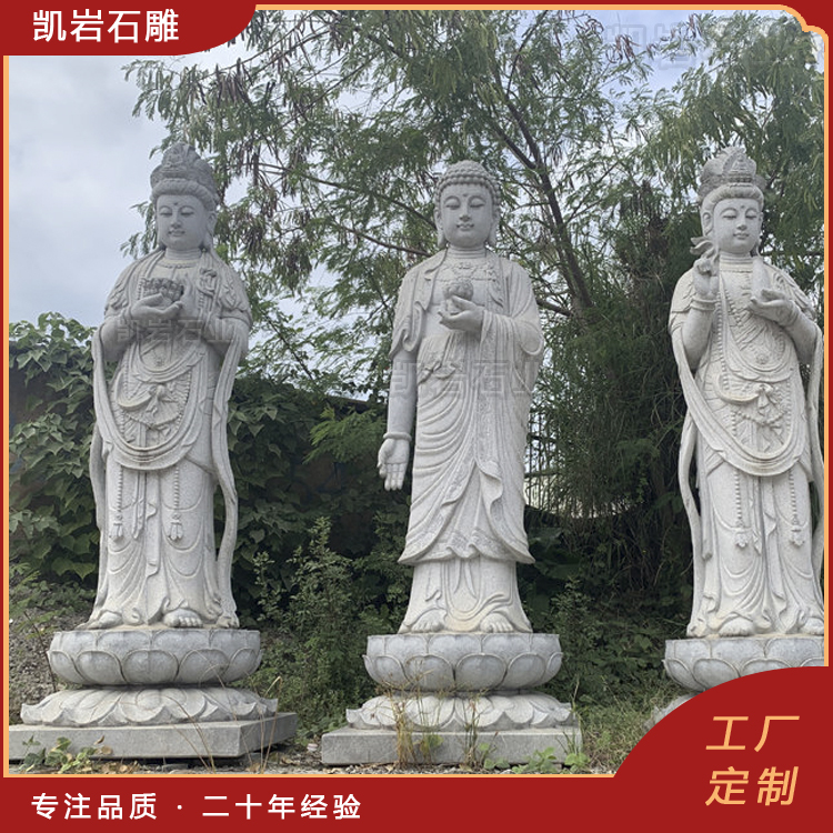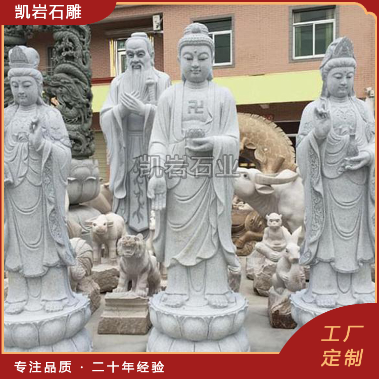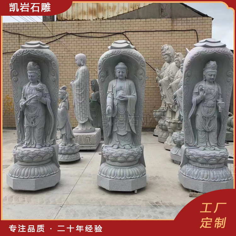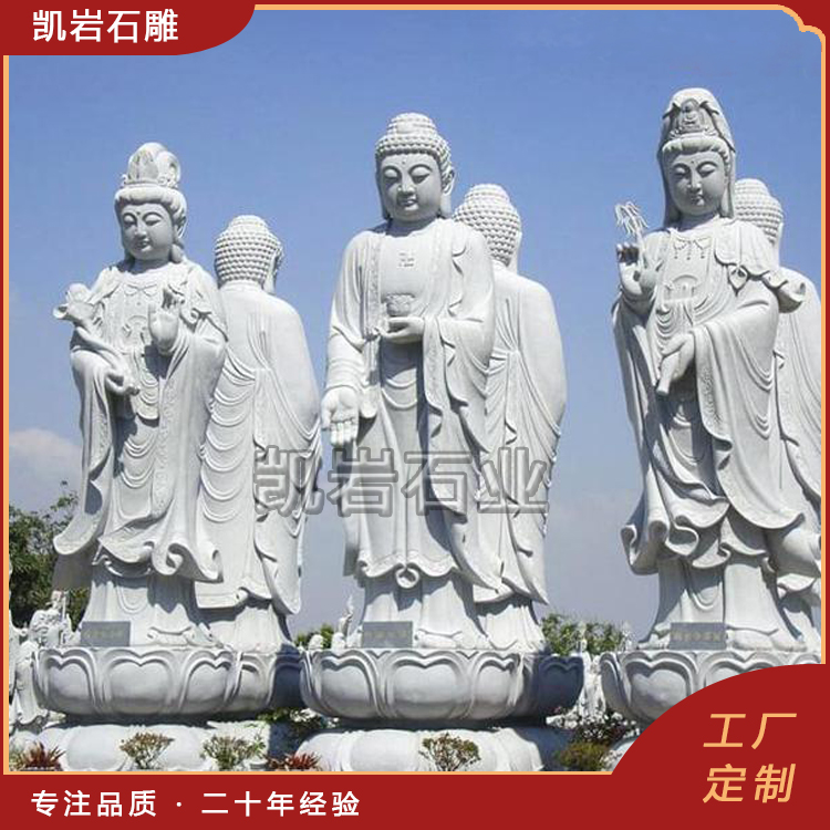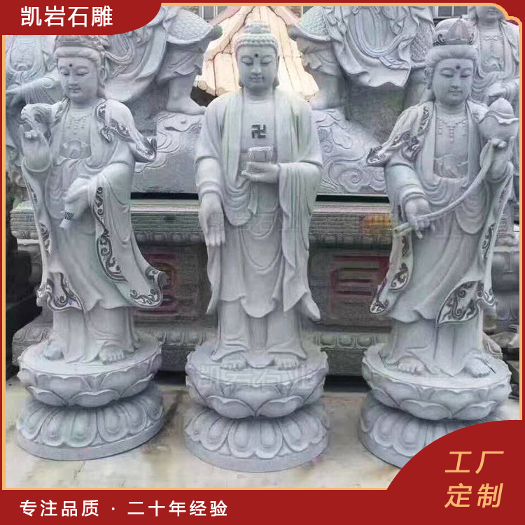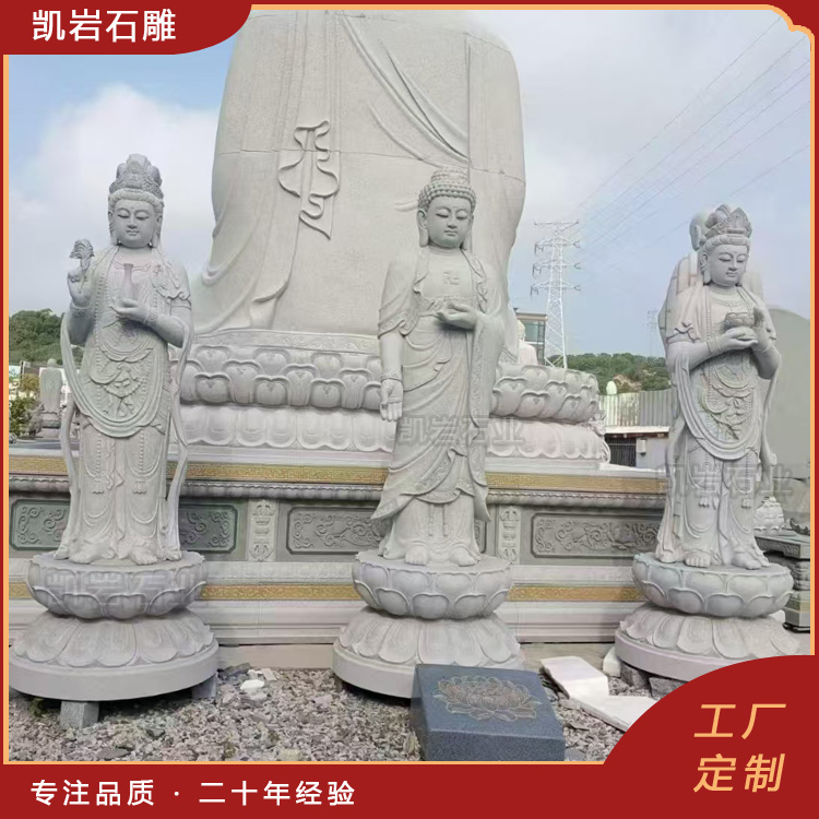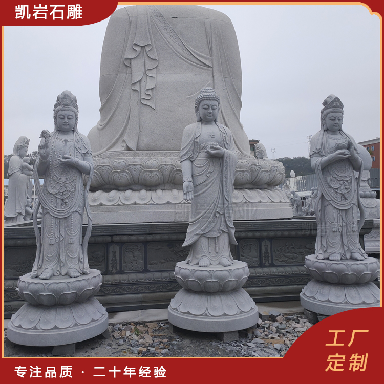 石雕西方三圣雕像以其细腻的雕刻工艺和生动的形态吸引着众多游人和信徒的目光。这些雕像多数由优质的石材雕刻而成,历经岁月的洗礼,依然保持着其独特的韵味。每一尊雕像都展现出高超的技艺,细致的面部表情和栩栩如生的肢体动作,仿佛在向人们传达着深邃的佛理和真挚的情感。 它不仅是寺庙中的庄严陈设,更是一种文化符号,承载着人们对美好、安宁、幸福的向往,也让千年石雕工艺与佛教文化得以代代传承、生生不息。 泉州凯岩石业制作的石雕西方三圣,采用优质的石质精雕细琢而成,善用千年文化雕凿工艺的研究、传承、融合和发扬,使石雕作品承载艺术文化、体现更多社会价值。 【相关阅读】