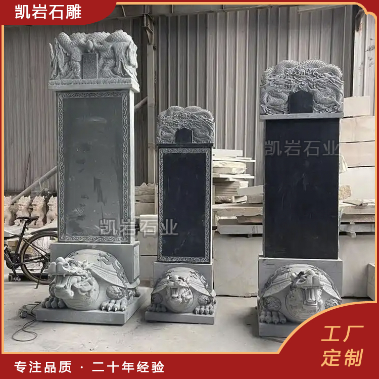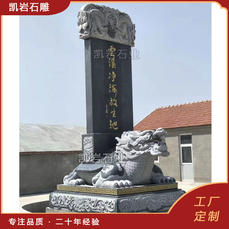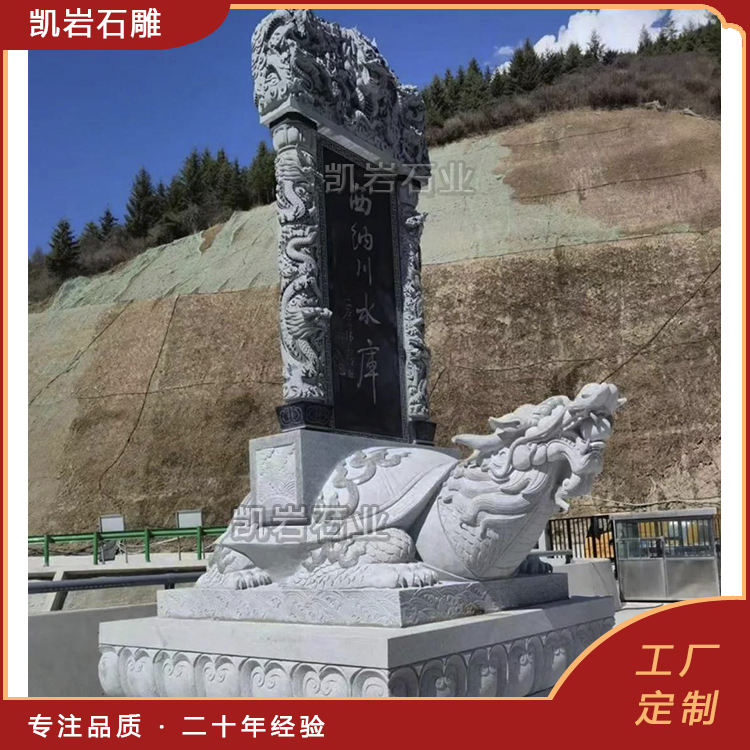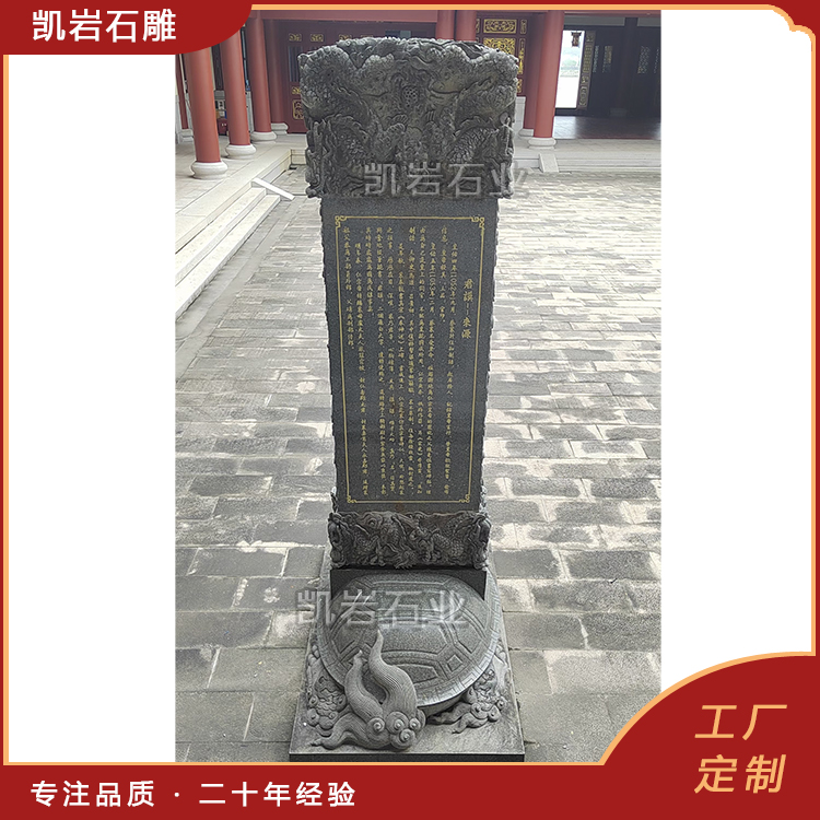 石雕龟驮碑将瑞兽之祥与碑文之重完美融合,既承载着记录历史、缅怀先贤的功能,也蕴含着祈福纳祥、镇宅安邦的美好寓意,是刻在石头上的“活史书”,更是中式文脉与匠心技艺的生动传承。 泉州凯岩石业制作的石雕龟驮碑,采用优质的石质精雕细琢而成,善用千年文化雕凿工艺的研究、传承、融合和发扬,使石雕作品承载艺术文化、体现更多社会价值。 【相关阅读】