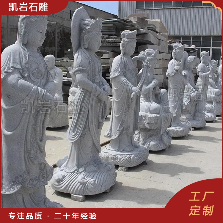 石雕三十三观音将佛教慈悲文化与传统雕刻艺术完美融合。这些造像多以天然花岗岩、青石等石材精雕而成,形态各异,寓意深远,不仅满足了信众多元的信仰需求,也成为承载深厚文化内涵的艺术珍品。形态各异却同样慈悲。三十三观音适应于寺院、文化广场及园林景观之中,寓意圆满周全。既能作为寺院、道场的核心安奉造像,也能作为传递信仰、寄托心愿的载体,让观音的慈悲护佑绵延不绝,承载一份信仰,传递一份安宁。以下介绍一些石雕三十三观音的图片,供大家欣赏! 【相关阅读】