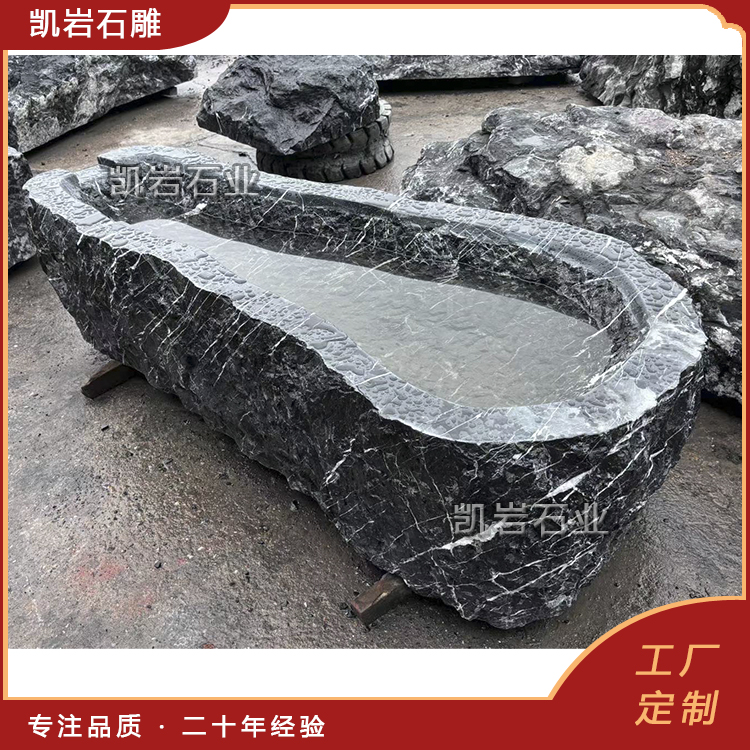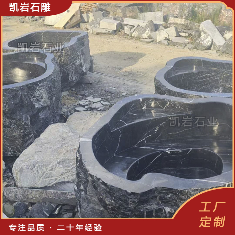 独特的黑山石经过加工定制展现出一种独具特色,神秘色彩自然的风景视觉感,黑山石加工水钵造景设计摆放在庭院中显得优雅大方,造就出一种意想不到的景观视觉效果,不张扬却极具格调,是现代高端庭院造景首选水景石雕。