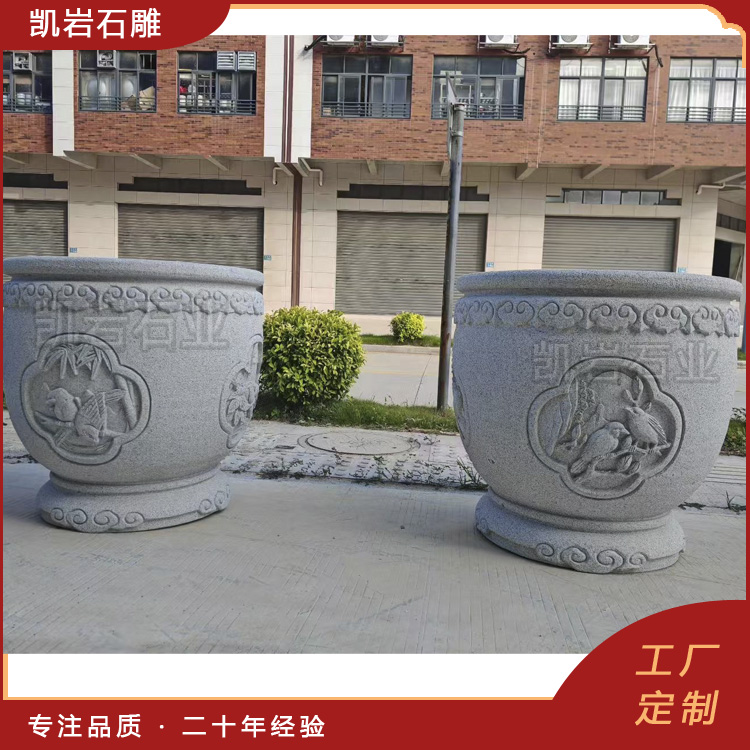 中式庭院必备:石雕梅兰竹菊浮雕花钵