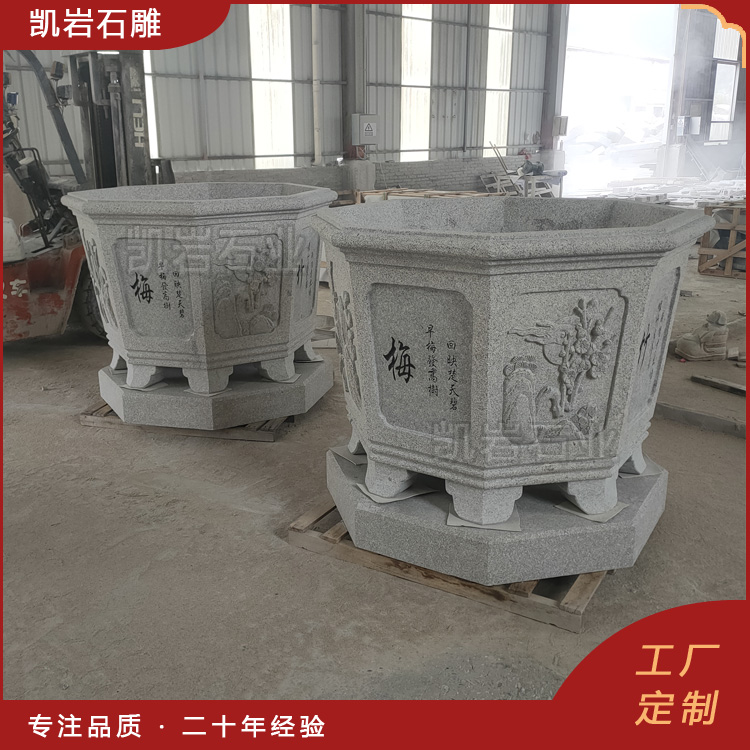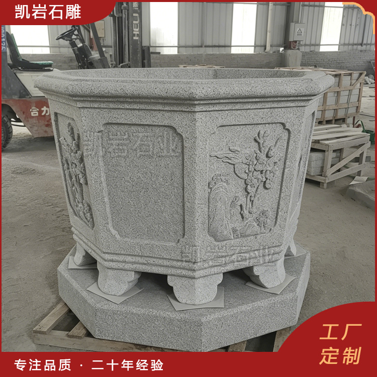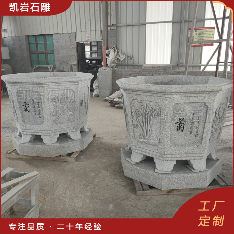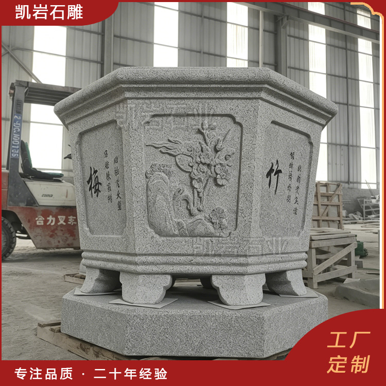 泉州凯岩石业制作的石雕梅兰竹菊浮雕花钵,采用优质的石质精雕细琢而成,善用千年文化雕凿工艺的研究、传承、融合和发扬,使石雕作品承载艺术文化、体现更多社会价值。 【相关阅读】