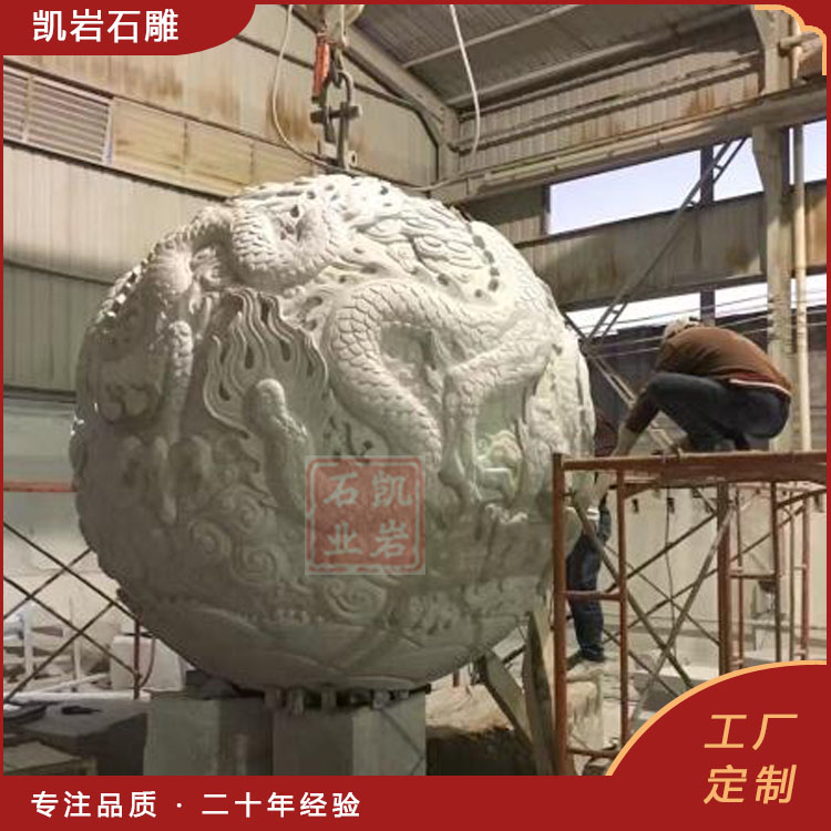 匠人们首先会选择质地坚硬、细腻的大理石或花岗岩作为原材料,整块原石一体雕刻,通过精细的打磨和切割,将石块逐渐塑造成球体的形状,之后采用圆雕、透雕、浮雕多重技法结合,精雕细琢,球体可自由转动,集祥瑞风水、雕刻艺术、建筑装饰于一体,从古至今都是庭院、牌坊、广场、寺庙里的点睛石雕珍品。