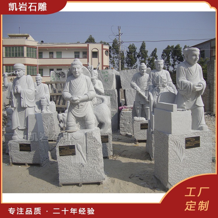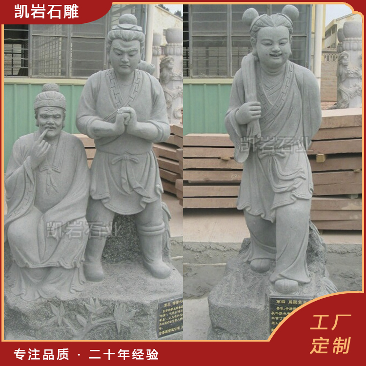 石雕二十四孝广泛应用于校园德育、社区文化建设、景区文化展示等场景,让人们在欣赏石雕艺术之美的同时,潜移默化地接受孝道文化的熏陶,孝心、孝行、孝悌等美德触动了无数人的心灵,让千年孝道精神在石头上延续,在当代焕发出新的生命力。 泉州凯岩石业制作的石雕二十四孝,采用优质的石质精雕细琢而成,善用千年文化雕凿工艺的研究、传承、融合和发扬,使石雕作品承载艺术文化、体现更多社会价值。 【相关阅读】