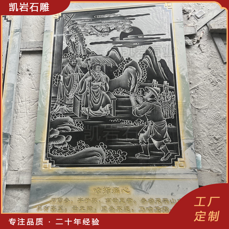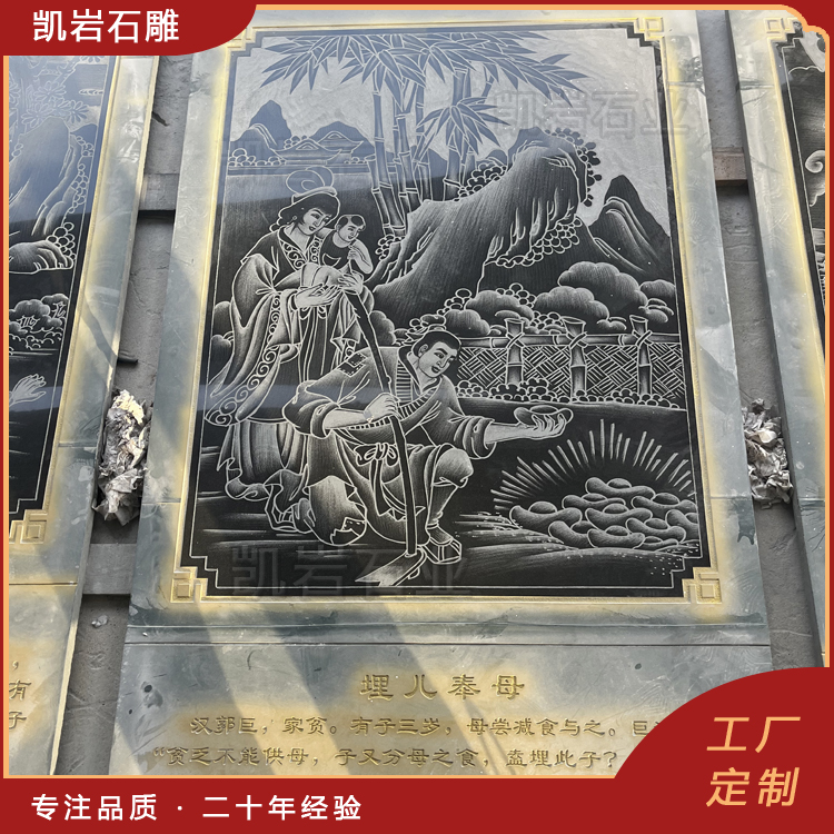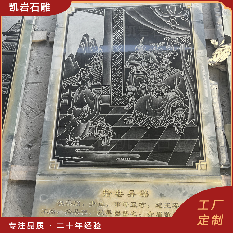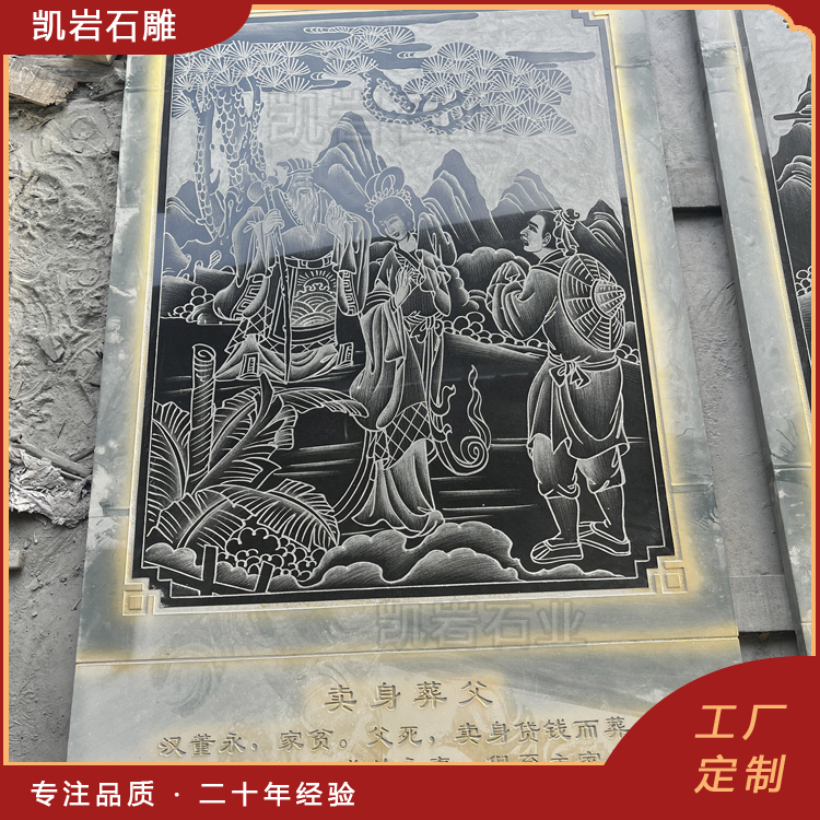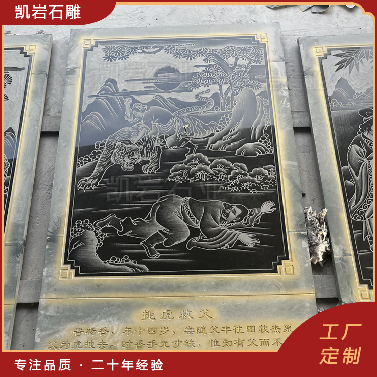 二十四孝石雕线雕,作为中国传统艺术的一种表现形式,通过石材雕刻来描绘中国传统二十四孝故事的艺术作品。这些故事主要体现了孝敬父母、尊敬长辈的道德伦理,具有深厚的文化意义和教育价值。 二十四孝石雕线雕壁画被广泛应用于寺庙、祠堂、祖厝等场所。在制作上需要雕刻师们具备高超的石雕技艺,通过精湛的技艺,将线条的粗细、深浅、疏密等要素巧妙地运用在画面中,形成了独特的艺术风格。这种风格既体现了雕刻师们的匠心独运,又展现了石雕线雕壁画独特的魅力,使石雕作品更具艺术性和观赏性。 泉州凯岩石业制作的二十四孝石雕线雕,采用优质的石质精雕细琢而成,善用千年文化雕凿工艺的研究、传承、融合和发扬,使石雕作品承载艺术文化、体现更多社会价值。 【相关阅读】