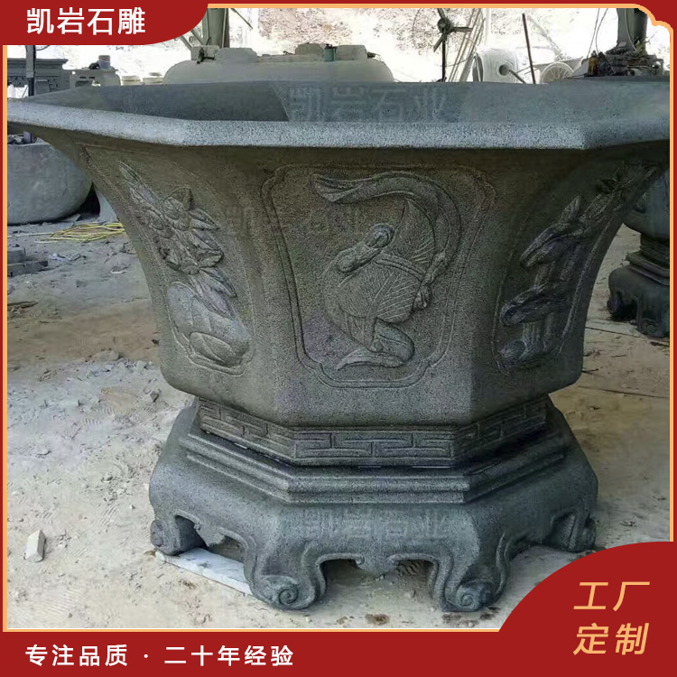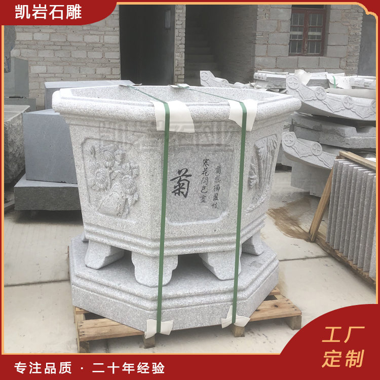 泉州凯岩石业制作的石雕花钵,采用优质的石质精雕细琢而成,善用千年文化雕凿工艺的研究、传承、融合和发扬,使石雕作品承载艺术文化、体现更多社会价值。 【相关阅读】
