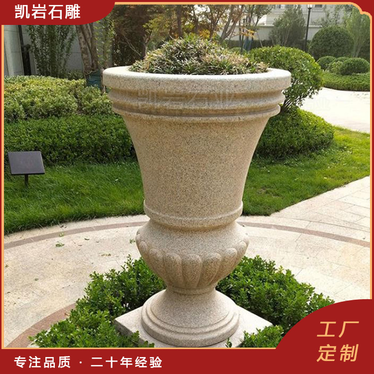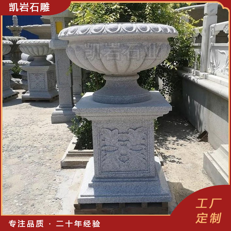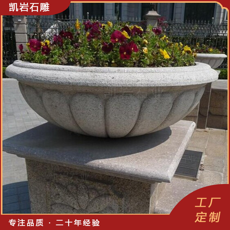 户外花岗岩石雕花钵 园林广场石材花盆