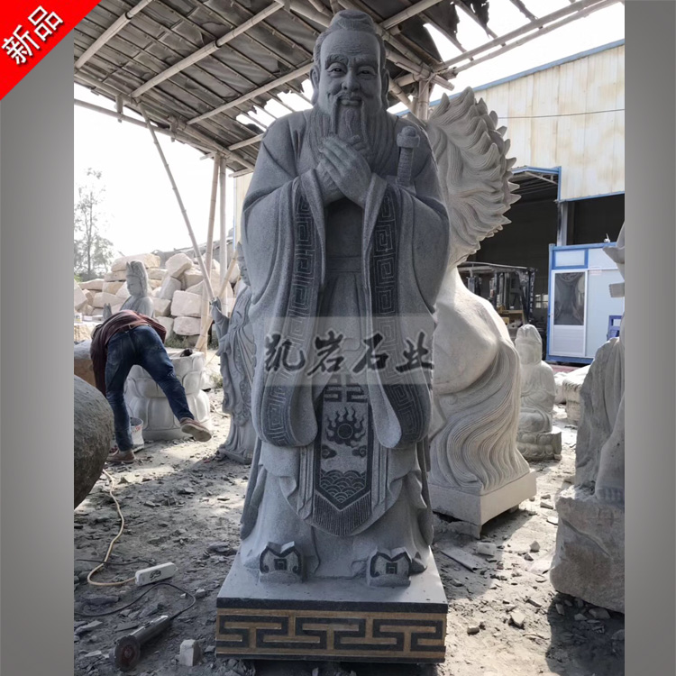 石雕孔子学说对我国的教育,文化有很深的意义。因此,我们在各地学校、广场、孔庙都能见到孔子的身影,在中国,儒家文化源远流长,石雕孔子像是传播思想文化的一种载体。 石雕孔子像是由天然石材雕刻而成,常用的石材有花岗岩,汉白玉,青石等。孔子在制作成石雕像有众多的版本,但是大部分的石雕孔子雕像都有一个共同点,就是石雕孔子的双手交叉放于胸前,这个特点也成了孔子雕像所必须有的基本造型。 泉州凯岩石业制作的石雕孔子,采用优质的石质精雕细琢而成,善用千年文化雕凿工艺的研究、传承、融合和发扬,使石雕作品承载艺术文化、体现更多社会价值。 【相关产品】