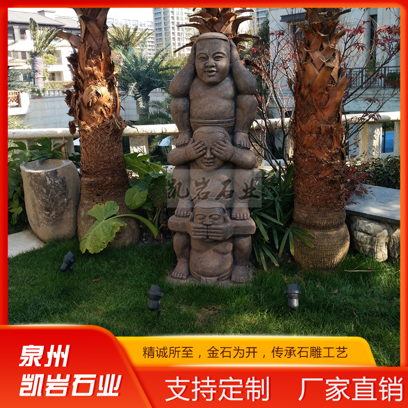 象鼻财神爷,有一面四臂、十二臂等身像,象头人形,鼻长目广,寂静相,分持各种法器,足蜷右由左,舞立姿踏于鼠上,这类神像随着佛学的传入而进入中国,然后在长年累月的传播中,神像和佛像也就慢慢的融合在了一起,特别是文化的结合以后,当然不仅仅是中国,在缅甸,在日本,也有同样类似的象头人身的佛像的存在,主要的作品是招财,庇佑发财的作用。 泉州凯岩石业制作的石雕象头王财神,采用优质的石质精雕细琢而成,善用千年文化雕凿工艺的研究、传承、融合和发扬,使石雕作品承载艺术文化、体现更多社会价值。 【相关产品】