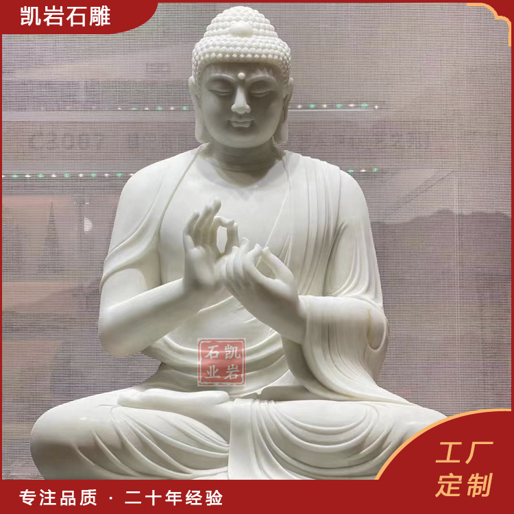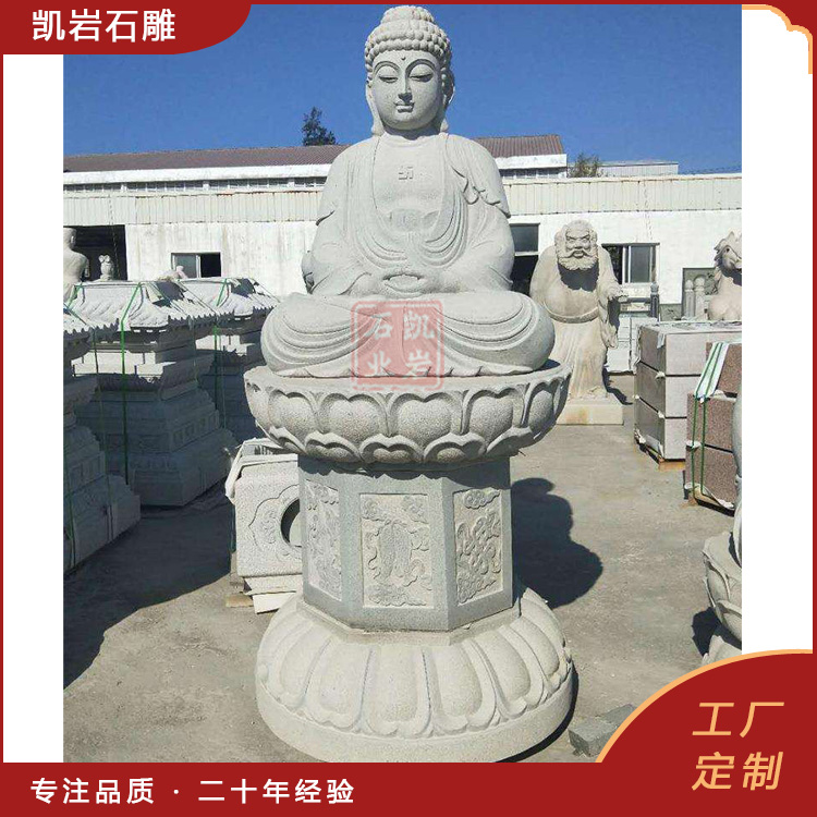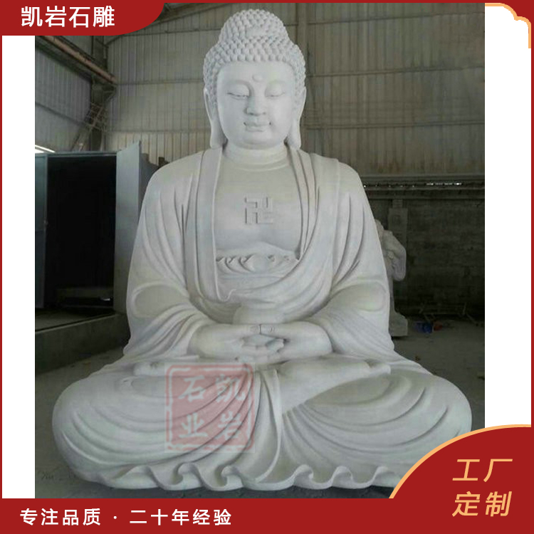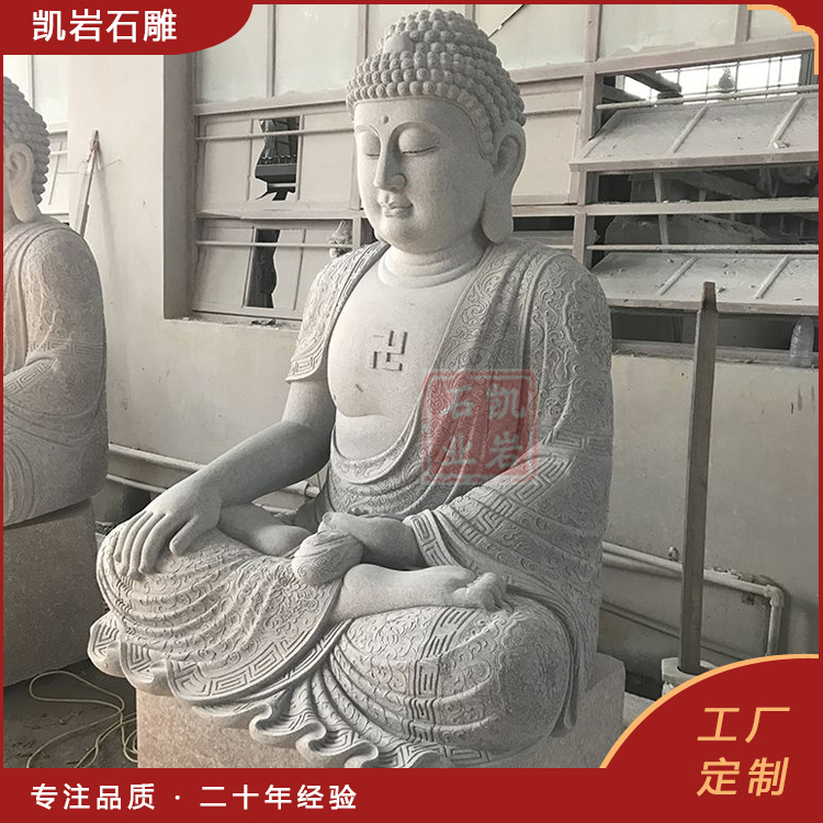 石雕释迦牟尼佛坐雕像是很多寺庙恭造最多的一尊佛像,主要供奉在大雄宝殿正中间,是众多善男信女包括对佛教文化有兴趣的游客会去拜拜和观佛的大佛,因此对于释迦牟尼佛石雕像的制作非常讲究,面相造型传神、逼真、形象、生动,佛像精神要能通过外形艺术去传达。石雕释迦牟尼佛,既可以是艺术品,可以给人以审美的愉悦感,也要能通过宗教造像去教化众生,让人们能够通过佛的精神世界去品味生活。 泉州凯岩石业制作的石雕释迦牟尼佛,采用优质的石质精雕细琢而成,善用千年文化雕凿工艺的研究、传承、融合和发扬,使石雕作品承载艺术文化、体现更多社会价值。