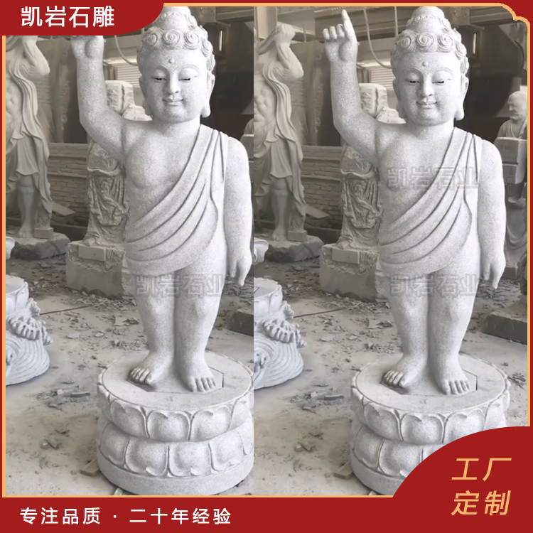 石雕太子佛,是以佛祖婴儿面相呈现法相的佛。整体佛身造型是孩童形象,或禅定,或欢喜,或站立一手指天一手指地。以下是一些石雕太子佛图片,供大家欣赏。