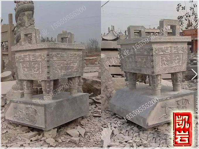 凯岩石业以天然花岗岩石头精心雕刻的石鼎,沉重而庄严,表面更有神秘的石像图腾,让观者止不住被它厚重的历史氛围所包裹。 石鼎雕刻因其价格、雕刻和不怕风吹日晒等优势成为现代最常用最实用的工艺品。石鼎的制作看似容易,但要做好它却让工艺师们极费心思。石鼎的外形都大同小异,表面上仅是或方或圆,三足四足加上两耳那样,看起来十分简单,但最主要的区别却在于其表身的图案雕刻技巧。那冷冽、神秘的复杂图腾,每一个代表了不同的意义。从小处彰显不同,从雕刻中显现历史,让石鼎更为引人瞩目。