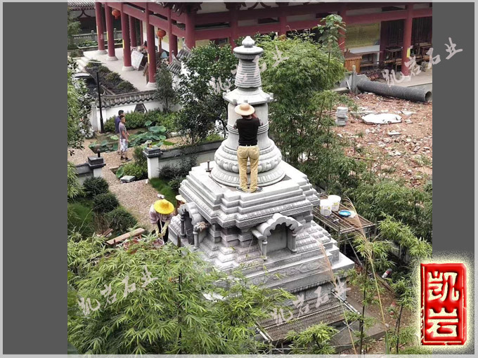 石塔属石经幢系,为寺院镇邪宝物,泉州凯岩石业有限公司雕刻的经典七宝如来塔、石塔、塔石雕采用福建优质花岗岩芝麻白为原材料,均由惠安石雕之乡惠安雕刻工艺师纯手工打造,一般规格高300CM至600CM不等,可根据要求定制,经典造型以温州景山护国寺的七宝如来塔为例;火袋开洞内置七宝如来相应雕像,七宝如来名号:南无多宝如来、南无宝胜如来、南无妙色身如来、南无广博身如来、南无离怖畏如来、南无甘露王如来、南无阿弥陀如来。