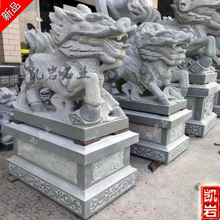石雕麒麟被广泛运用于我们的建筑中,可以说石雕麒麟是我们中国传统建筑的一大标志,其不仅仅是权力的象征,更加是吉祥的象征。 石雕麒麟一般分为走势石雕麒麟、坐式石雕麒麟,而坐式石雕麒麟也有分别,主要体现在麒麟的脚掌上面,有的麒麟是马蹄状的脚掌,有的是龙爪麒麟。还有的麒麟是和狮子一样,一个爪子下面是个绣球,一个爪子是抓着小麒麟的。这样就能区分公母。 民间传说中就有石雕麒麟形态的描述,石雕麒麟不仅形象勇猛威武,而且变化多端,造型经历岁月的洗礼,从形式到内容也都不断发生着变化。自汉朝以来,石雕麒麟造型出现了鹿的造形和狮、虎的造形,身上花纹从无麟到有麟,脚部出现了牛蹄、马蹄以及龙爪造型。到了清代中期,石雕麒麟的造型除了保留继承了前期麒麟造型中的双角形、独角形、羊须形、虎嘴形以及鳞片外,并增强了表现力,其装饰华丽,工艺更为繁复,同时也体现了当时的高超技艺。 泉州凯岩石业制作的石雕麒麟,采用优质的石质精雕细琢而成,善用千年文化雕凿工艺的研究、传承、融合和发扬,使石雕作品承载艺术文化、体现更多社会价值。
