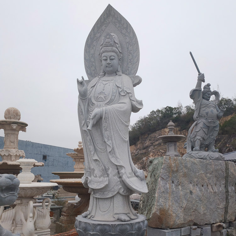 石雕观音是一种中国特色民俗工艺文化。又称为观自在菩萨、观世音菩萨。又与普贤菩萨和文殊菩萨合称“三大士”,还与阿弥陀佛和大势至菩萨并称“西方三圣”。