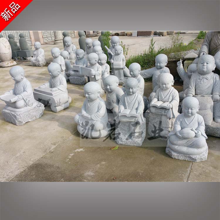 近几年这些小小的佛教人物石雕还是比较流行的、也是比较有市场的。石雕小沙弥的:有做早课晨练的小石雕、有拿着扫把在打扫的小石雕、也有着躺在树下偷懒的小石雕等等,这些都是根据小和尚这种人物来做成的石雕,也是深受社会上很多人喜欢的。这种石雕的类型在制作上虽然不如一些大和尚石雕那样庄严、慈悲,但是有着属于他们年龄特点的一些制作雕刻。 小沙弥石雕在雕刻上也是需要精雕细刻的,像一些脸部的表情或者是手上的动作等等。就像雕刻出的脸上晨练时透露出的喜悦、在偷懒时显现出来的慵懒等等都是非常细微的地方,对于这些细节上的雕刻都是要非常完美的,这样雕刻出的石雕小沙弥才更能显示出他的真实性。同时可以把这种人物的心里特征通过雕刻出来的面部表情展示出来的,让这种非常普通的石头雕刻制作出的石雕小和尚变得更加的有生命力。 泉州凯岩石业制作的石雕小沙弥(石雕小和尚),采用优质的石质精雕细琢而成,善用千年文化雕凿工艺的研究、传承、融合和发扬,使石雕作品承载艺术文化、体现更多社会价值。 【相关产品】