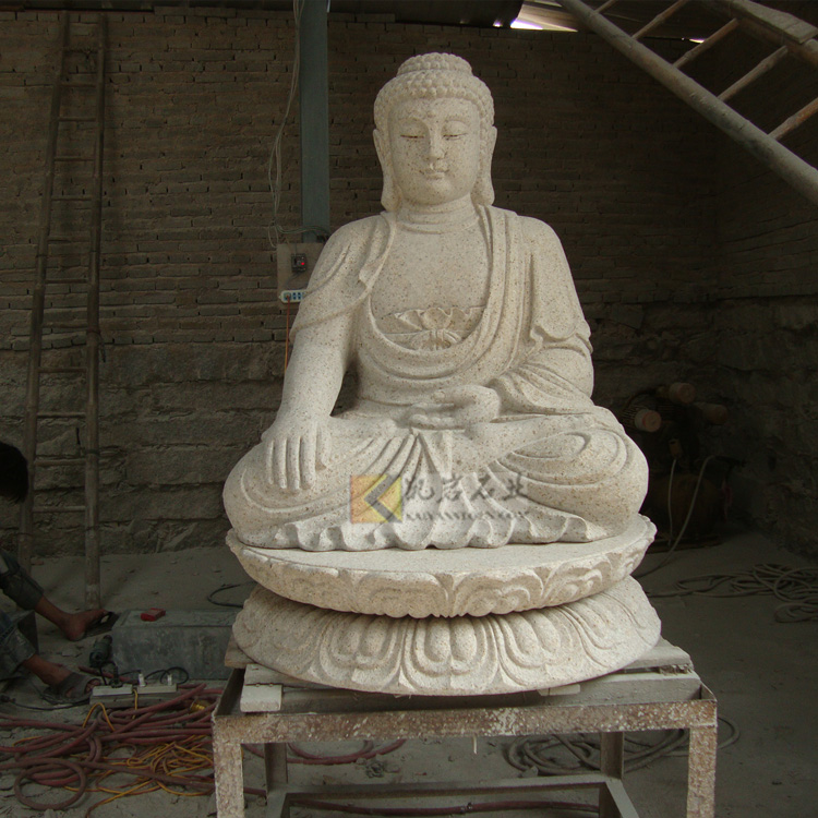 石雕释迦牟尼佛坐雕像是很多寺庙恭造最多的一尊佛像,主要供奉在大雄宝殿正中间,是众多善男信女包括对佛教文化有兴趣的游客会去拜拜和观佛的大佛,因此对于释迦牟尼佛石雕像的制作非常讲究,面相造型传神、逼真、形象、生动,佛像精神要能通过外形艺术去传达。石雕释迦牟尼佛,既可以是艺术品,可以给人以审美的愉悦感,也要能通过宗教造像去教化众生,让人们能够通过佛的精神世界去品味生活。